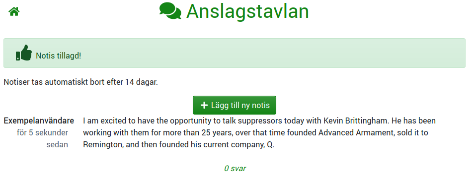 Som standard försvinner inläggen automatiskt efter 14 dagar. Ändrar man inställningen till 0 försvinner inlägget aldrig.