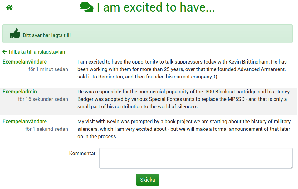 Anslagstavlan är en sida där användarna kan skriva meddelanden som kan läsas av alla andra användarna.