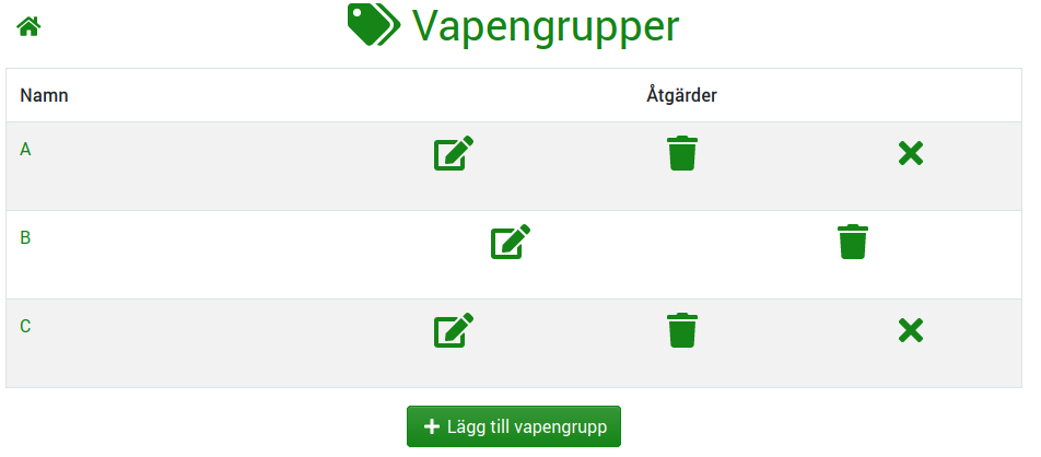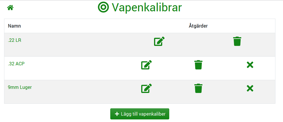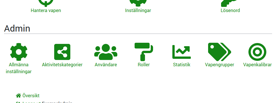 Administrationsinställningar Administratören har fulla rättigheter att sköta föreningens inställningar. Administratörens översikt Administratörens inställningar Redigera aktivitetskategorier Redigera vapengrupper Redigera vapenkalibrar Redigera användarroller