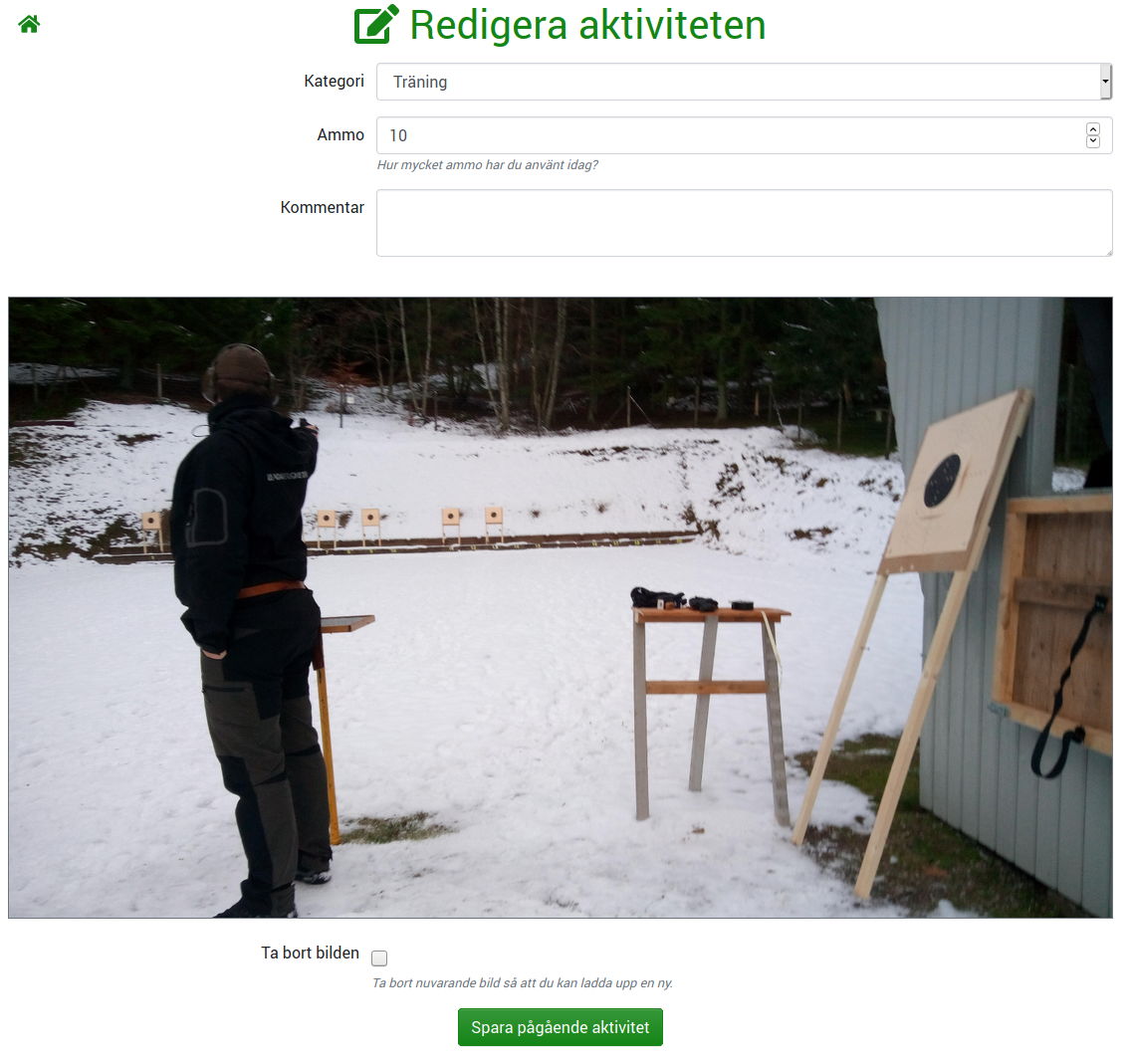 Om du vill, eller om föreningen kräver det, kan du ladda upp en bild på aktiviteten i enlighet med de riktlinjerna föreningen har satt upp (exempelvis att bilden ska visa vapnet, tomhylsorna och banan).
